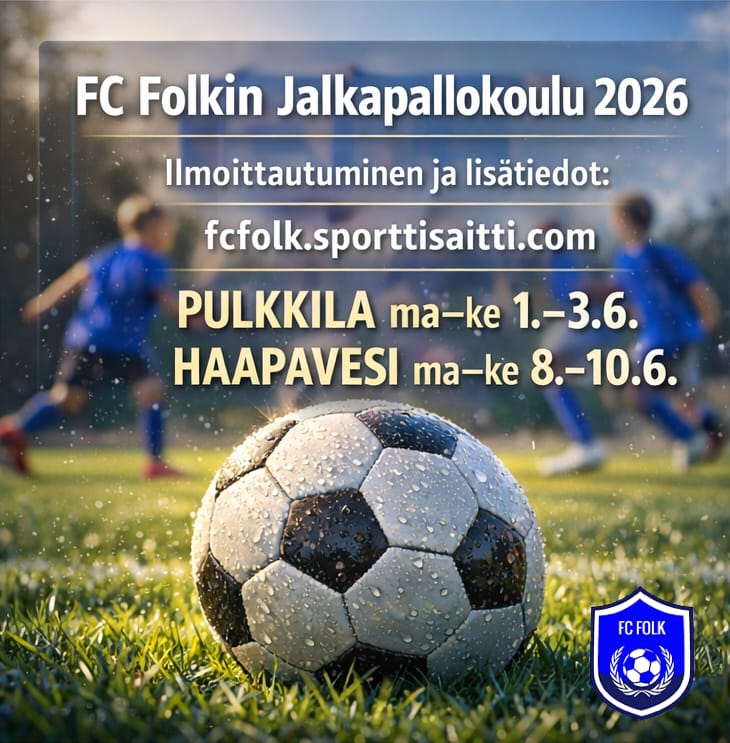 Jalkapallokoulu järjestetään tänä vuonna Pulkkilassa ma-ke 2.6.-3.6.2026. Jalkapallokoulu on tarkoitettu esi- ja alakouluikäisille lapsille.