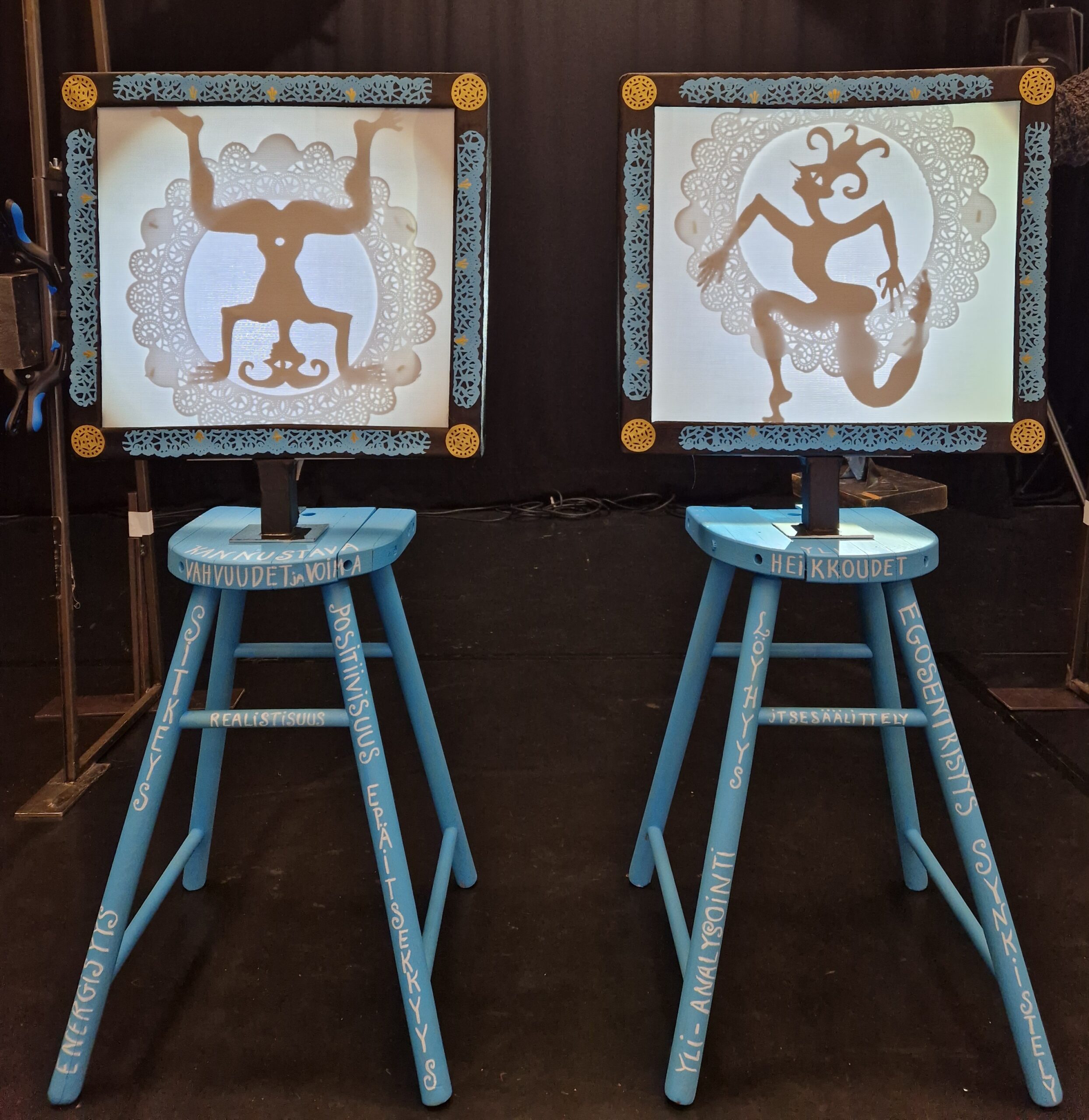työpajojen kautta syntyneestä materiaalista -varjo ja paperinukeista