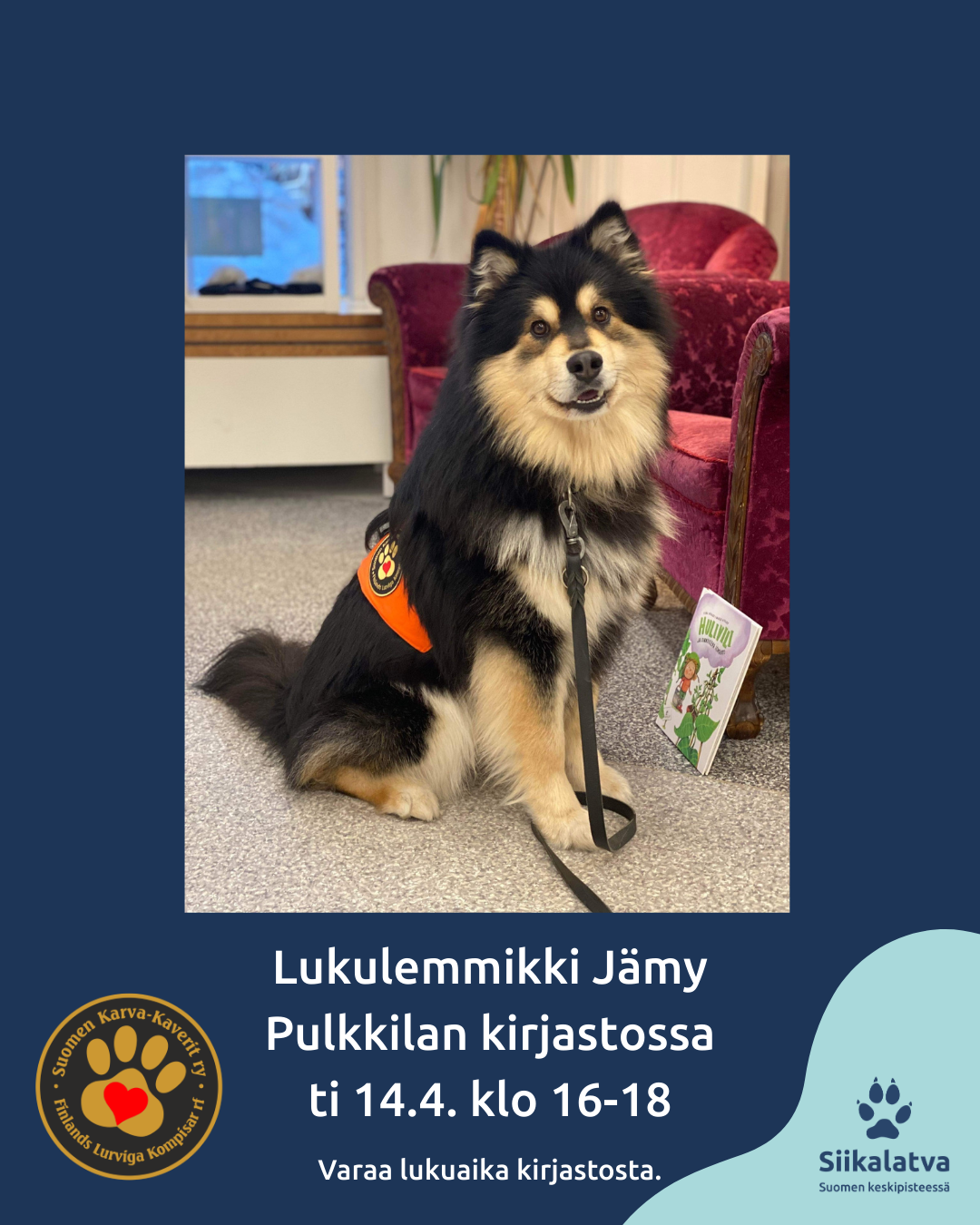 Lukuhetken kesto on 20 minuuttia ja sen voi käyttää yksin tai yhdessä kaverin kanssa. Varaa aika etukäteen sähköpostilla pulkkila.kirjasto@siikalatva.fi, numerosta 044 5118 534 tai paikan päällä kirjaston aukioloaikoina. Huom. lapset ovat huoltajan vastuulla.